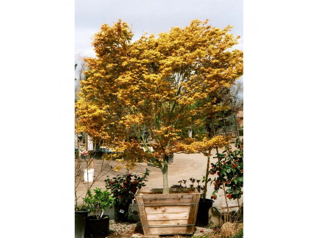 Acer palmatum (Javor dlaňovitolistý) "Katsura" je opadavý strom, s okrúhlou korunou. Listy má 7 až 11 laločné s lalokmi hlboko a jemne strihanými. Listy ostávajú do jesene červenopurpurové.Dorastá do výšky 2m a šírky 3m. Kvety sú drobné, purpurovočervené, vytvárajú sa v malých, previsnutých chocholíkoch a koncom leta sa vyvinú na červenokrídlaté plody. Čína, Kórea, Japonsko.