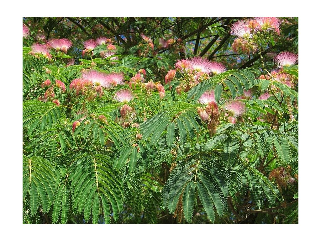 Exoticky vyzerajúci strom, vyrastajúci do výšky 3-5m. Vytvára dáždnikovú korunu. Na večer sa listy sklápajú. Kvitne krásnymi kvetmi - volajú ho i hodvábny strom. Z kvetov sa vyrábajú rôzne parfémy a aviváže.