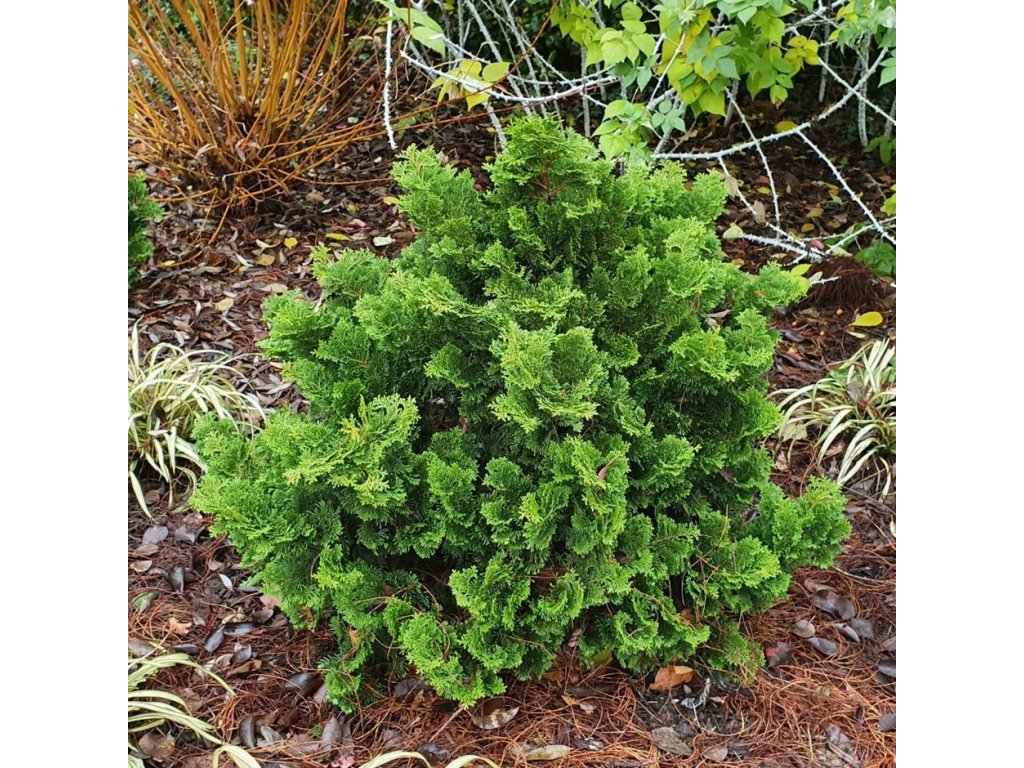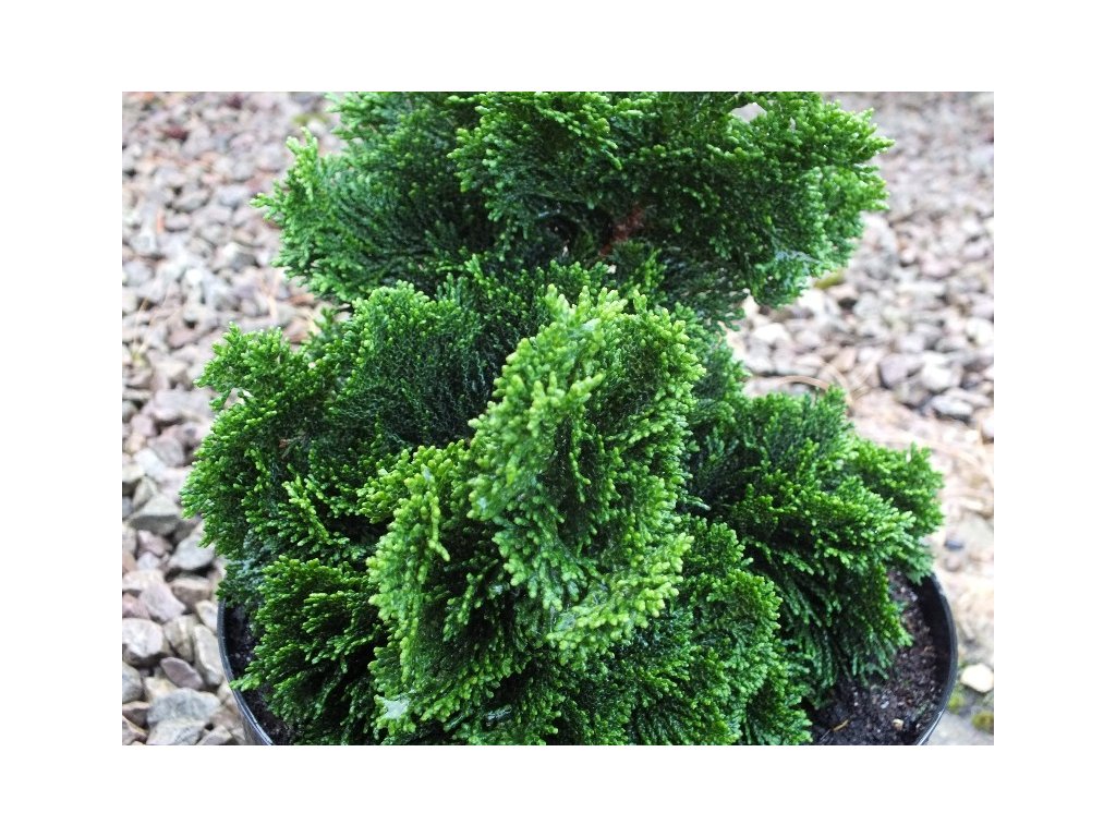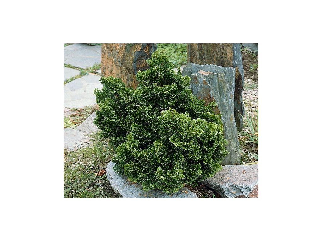 Jeden z najpopulárnejších trpasličích ihličnanov. Je to veľmi odolná rastlina s lesklým žiarivo-zeleným ihličím a vzpriameným kužeľovitým tvarom. Ihličie vytvára husté ploské vejáriky. Rastie pomaly - asi 4-5cm za rok. Výborne sa hodí do skaliek, do nádob a do malých kompozícií, ako aj na tvarovanie bonsajov. Môže dosiahnuť výšku 3m a šírku 2m, no až po 70-tich rokoch rastu.