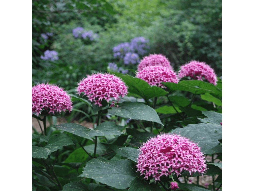 Ide o opadavý ker pochádzajúci z Číny. Veľké tmavo zelené listy v tvare srdca, ktoré sú často sfarbené červenofialovo, sú po rozdrvení voňavé. Krásne ružové kvety ako pom-pom sa objavujú koncom leta a sú veľmi nápadné a sladko voňajúce a sú obzvlášť atraktívne pre motýle.Porastie v akejkoľvek dobre priepustnej pôde na plnom slnku alebo v čiastočnom tieni. Je vodná krytá poloha pred zimnými mrazmi. Môže sa stať, že sa horná časť výhonov pri silných mrazoch poškodí, ale obvykle ker znova obrastie.