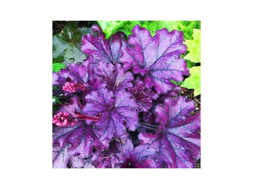 Heuchera ´Forever Purple´- Heuchera ´Forever Purple´má intenzívne fialové sfarbenie listov s ružovkastým odleskom. Na pôvab heuchere pridáva striebristá kresba listov. Kvitne malými ružovkastými kvetmi.Efektne pôsobí v kombinácii so stálozelenými ostricami, čemericami, papraďami a zbehovcom.Bujne rastúca odroda obľúbeného dlhokvetého, ktorá vytvára kompaktný trs dosahujúci výšku približne 50 cm.