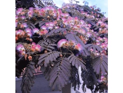 Albizia julibrissin - Albízia ružová je opadavý strom, ktorý má dáždnikovitý tvar.Exoticky vyzerajúci strom, vyrastajúci do výšky 3-5m. Vytvára dáždnikovú korunu.