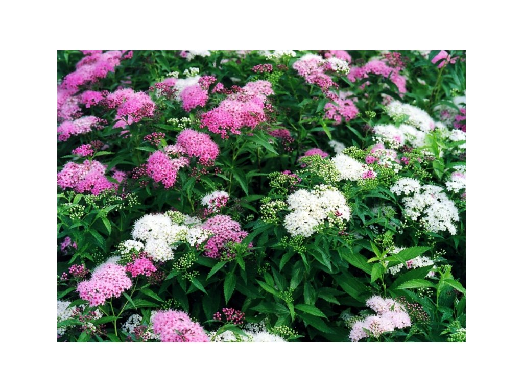 Genpei/ Shirobana spiraea japonica tavoľník má pekný trojfarebný efekt, kvietky sa tvoria ružové a prechádzajú do bielej. Ker je zakrslý, má zelené listy v tvare kopije. Kvitnutie začína koncom jari až začiatkom leta.