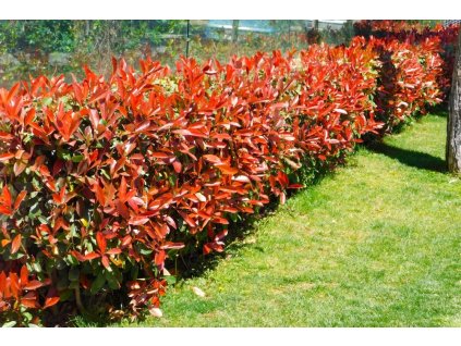 Photinia 'Carré Rouge' je neopadavý, kompaktný krík s menšími listami a veľmi hustým rastom. Široko elipčité listy sú jasne červené pri rašení a tmavo zelené po dozretí, pričom vrcholové listy zostávajú vínovo červenkasté po celú sezónu a na zimu naberú ešte o niečo červenší odtieň. Mladé stonky sú tiež sýto červené.Má rýchli rast, rastie vzpriamene a husto aj bez strihania. Rez prevádzajte zjari po mrazoch v marci až apríli. Ak si prajete obnoviť nové pučania červených listov, môžete ju znovu zostrihnúť na začiatku leta. Preferuje vlhké nie premočené stanovište a výživnú zem. Vzhľadom k vysokému odparovaniu vody z listov odporúčame zamulčovať alebo v letných mesiacoch zálievku navyše.