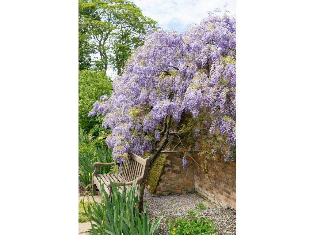 Popínavý opadavý ker, ktorý sa na jar zviditeľní svojimi veľkými žiarivými strapcami modrých kvetov. Ich sladká vôňa ešte viac zvýrazní jej nádheru. V období kvitnutia sa takmer úplne stratí jej svetlozelené olistenie. Voňavé kvety lákajú včely. Celá rastlina je jedovatá. Dá sa z nej vytvoriť aj polokmeň.